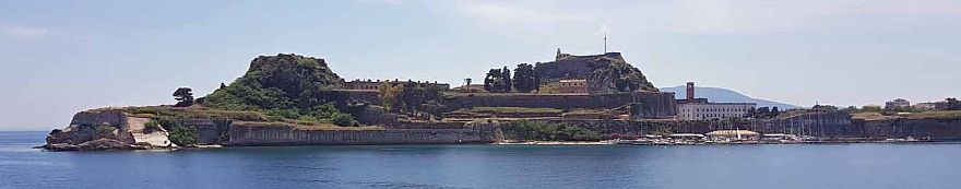 The Old and New Fortresses The Old Fortress dates back to the sixth century and was built on a small island at the eastern end of Corfu Town. The entrance can be found opposite the Liston, near Corfu's Esplanade. The large moat is now used as a harbour for fishing boats and entrance is via a bridge across it. Construction was started in Byzantine times and the fortress was later strengthened and expanded under Venetian occupation to protect Corfu Town from Turkish invasion. A statue in honour of Commander Schulenburg who successfully defended the town against the Turks can be seen close to the entrance. The Fortress houses a museum of Byzantine history, the old barrack buildings, hospital and prison, two churches and a lighthouse. There are stunning views across the town and the sea. The New Fortress is less impressive but more imposing. It was built by the Venetians between 1576 and 1645 and this huge complex of fortifications dominates the north-eastern part of the city. It was until recently a restricted area due to the presence of a naval garrison but is now open to the public, with tours possible through the maze of medieval corridors and fortifications. The winged Lion of St Mark, the symbol of Venice, can be seen at regular intervals adorning the fortifications. The New Fortress is worth a visit if only for the marvellous view from the top. |